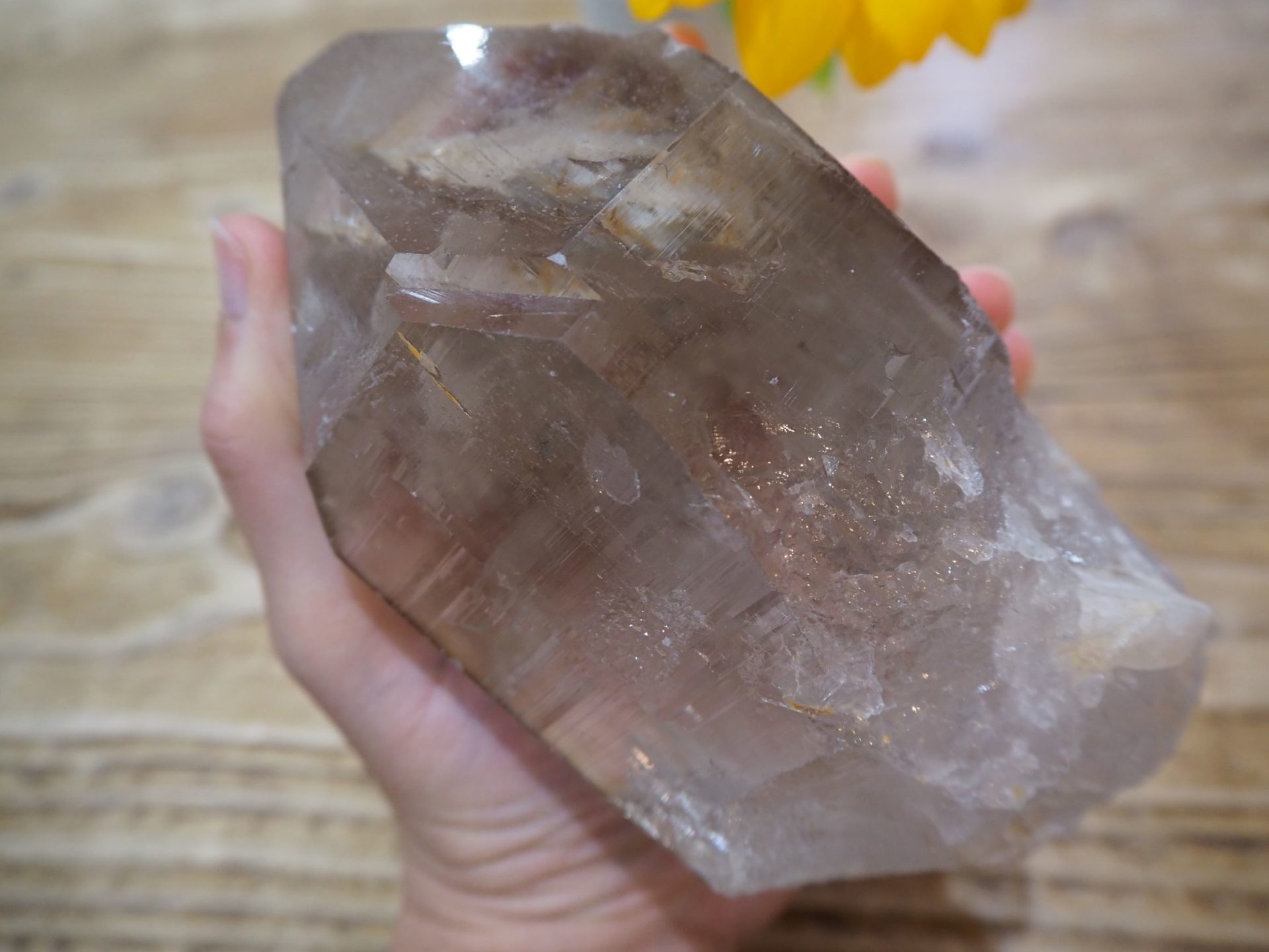 写真↓は、そのうちアップ予定のスモーキーカテドラルです。ルチル入ってますね~。まだまだ紹介していないストーンあるので、お楽しみに。