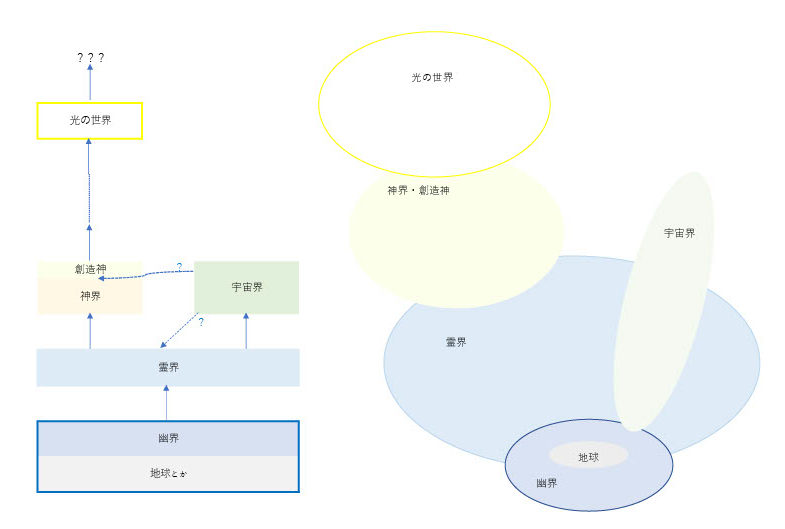 神界や光の世界や宇宙界の円の大きさは、作成の都合上ですので、お気になさらず。